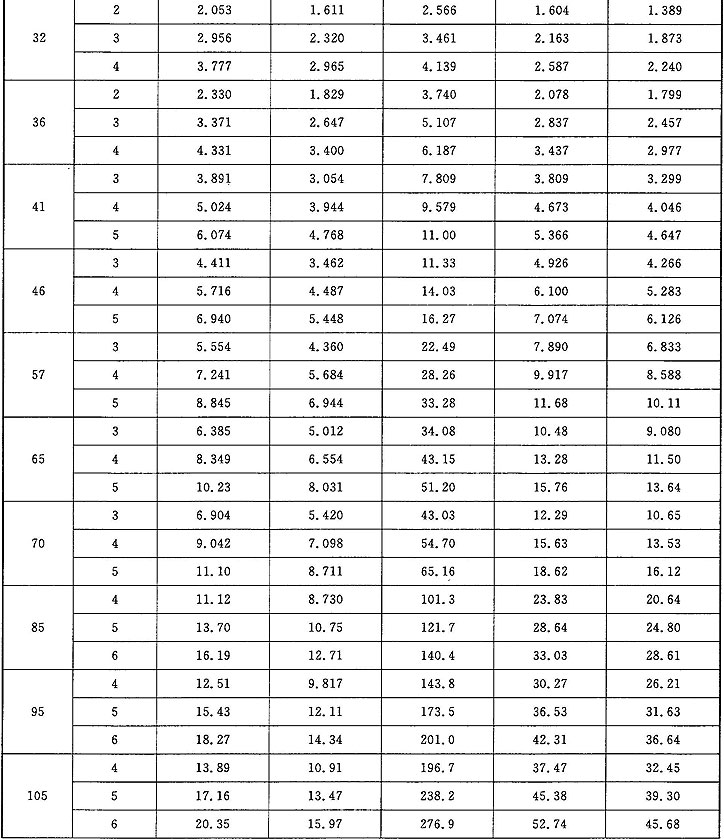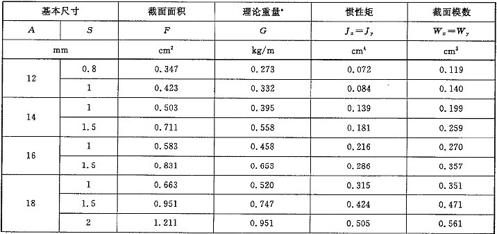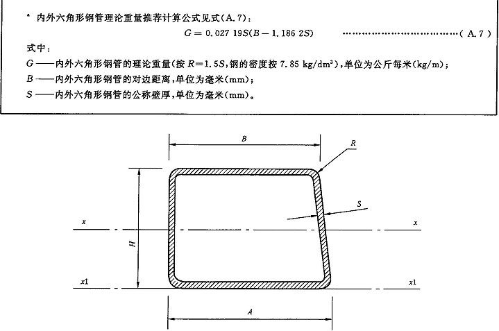 表A.5 內外六角形鋼管的尺寸、理論重量和物理參數