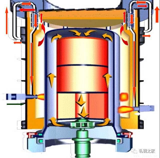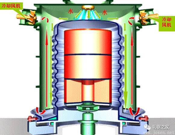 在全氫罩式退火爐工藝過程中,冷卻要從還在爐臺(tái)上面的加熱罩開始,首先要往加熱罩里面吹入空氣,然后移走加熱罩。接著吊裝冷卻罩,通過冷卻罩上面的風(fēng)機(jī)抽吸周圍環(huán)境的空氣冷卻內(nèi)罩。當(dāng)內(nèi)罩里面的循環(huán)氣氛達(dá)到設(shè)定的溫度的時(shí)候,冷卻罩風(fēng)機(jī)要停止運(yùn)行,過一段時(shí)間之后,噴淋冷卻開始。當(dāng)鋼卷卷心的溫度達(dá)到設(shè)定值之后,冷卻結(jié)束,移走冷卻罩。然后進(jìn)行氮?dú)獯祾撸脫Q內(nèi)罩里面的氫氣,移走內(nèi)罩,較后吊走鋼卷,這樣一個(gè)工藝過程就完成了。