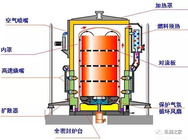 罩式退火屬于光亮退火工藝,退貨前將罐中的空氣抽出,在灌入氮?dú)饣蛘叨栊詺怏w,然后通電加熱,燒到多少度、在多少度保持多長(zhǎng)時(shí)間、然后再逐步自然降溫,有一整套退火溫度控制曲線。