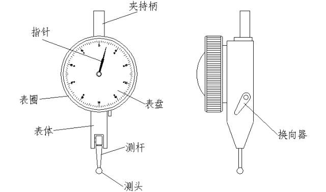 D、杠桿百分表測桿能在正反方向上進行工作。根據測量方向的要求,應把換向器30搬到需要的位置上。