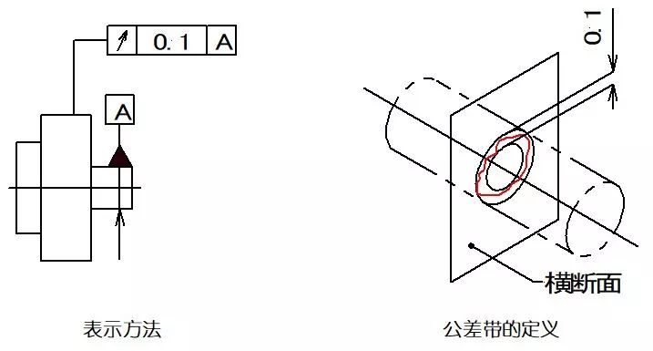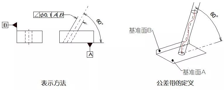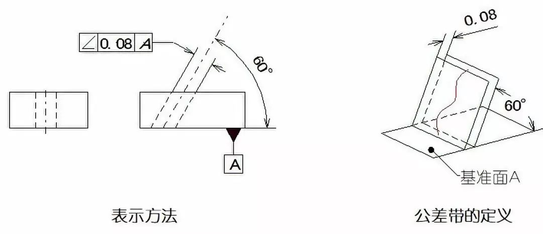 直線度,即通常所說的平直程度,表示零件上的直線要素實際形狀保持理想直線的狀況。直線度公差是實際線對理想直線所允許的最大變動量。示例1:在給定平面內(nèi),公差帶必須在距離為0.1mm的兩平行直線間的區(qū)域。示例2:在公差值前加注記號Φ、則公差帶必須在直徑0.08mm的圓柱面內(nèi)的區(qū)域。平面度,即通常所說的平整程度,表示零件的平面要素實際形狀,保持理想平面的狀況。平面度公差是實際表面對理想平面所允許的最大變動量。示例:公差帶是位于距離0.08mm的兩個平行平面之間的區(qū)域。圓度,即通常所說的圓整程度,表示零件上圓的要素實際形狀與其中心保持等距的狀況。圓度公差是在同一截面上,實際圓對理想圓所允許的最大變動量。示例:公差帶必須在同一正截面上,半徑差為公差值0.03mm的兩個同心圓之間的區(qū)域。圓柱度是表示零件上圓柱面外形輪廓上的各點,對其軸線保持等距狀況。圓柱度公差是實際圓柱面對理想圓柱面所允許的最大變動量。示例:公差帶是半徑差為公差值0.1mm的兩個同軸圓柱面之間的區(qū)域。線輪廓度是表示在零件的給定平面上,任意形狀的曲線,保持其理想形狀的狀況。線輪廓度公差是指非圓曲線的實際輪廓線的允許變動量。示例:公差帶是由包絡一系列直徑為公差0.04mm的圓的兩包絡線之間的區(qū)域。諸圓的圓心位于具有理論正確幾何形狀的線上。面輪廓度是表示零件上的任意形狀的曲面,保持其理想形狀的狀況。面輪廓度公差是指非圓曲面的實際輪廓線,對理想輪廓面的允許變動量。示例:公差帶是由包絡一系列直徑為0.02mm的球的兩條包絡線之間,諸球的中心理論上應位于理論正確幾何形狀的面上。平行度,即通常所說的保持平行的程度,表示零件上被測實際要素相對于基準保持等距離的狀況。平行度公差是被測要素的實際方向,與基準相平行的理想方向之間所允許的最大變動量。示例:如公差值前加注記號Φ、則公差帶為基準平行直徑Φ0.03mm的圓柱面內(nèi)。垂直度,即通常所說的兩要素之間保持正交的程度,表示零件上被測要素相對于基準要素,保持正確的90°夾角狀況。垂直度公差是被測要素的實際方向,對于基準相垂直的理想方向之間所允許的最大變動量。示例1:公差帶前加注記號Φ,則公差帶垂直于基準面直徑為0.1mm的圓柱面內(nèi)。示例2:公差帶必須位于距離為0.08mm且垂直于基準線的兩平行平面之間。傾斜度是表示零件上兩要素相對方向保持任意給定角度的正確狀況。傾斜度公差是被測要素的實際方向,對于基準成任意給定角度的理想方向之間所允許的最大變動量。示例1:被測軸線的公差帶是距離為公差值0.08mm,且與基準面A成理論角度60°的兩平行平面之間的區(qū)域。示例2:在公差值前加注記號Φ,則公差帶必須位于直徑為0.1mm的圓柱面內(nèi)。該公差帶應平行于垂直于基準A的平面B,并與基準A呈理論正確角度60°。位置度是表示零件上的點、線、面等要素,相對其理想位置的準確狀況。位置度公差是被測要素的實際位置相對于理想位置所允許的最大變動量。示例:公差帶前加注記號SΦ時、公差帶是直徑0.3mm的球內(nèi)區(qū)域。球公差帶的中心點的位置是相對于基準A、B及C的理論正確尺寸。同軸度,即通常所說的共軸程度,表示零件上被測軸線相對于基準軸線,保持在同一直線上的狀況。同軸度公差是被測實際軸線相對于基準軸線所允許的變動量。示例:公差值加注記號時,公差帶是直徑0.08mm的圓柱之間區(qū)域。圓形公差帶的軸線與基準一致。對稱度是表示零件上兩對稱中心要素保持在同一中心平面內(nèi)的狀態(tài)。對稱度公差是實際要素的對稱中心面(或中心線、軸線)對理想對稱平面所允許的變動量。示例:公差帶是距離為0.08mm、且相對于基準中心平面或中心線對稱配置的兩平行平面之間或直線之間的區(qū)域。圓跳動是表示零件上的回轉(zhuǎn)表面在限定的測量面內(nèi),相對于基準軸線保持固定位置的狀況。圓跳動公差是被測實際要素繞基準軸線,無軸向移動地旋轉(zhuǎn)一整圈時,在限定的測量范圍內(nèi)所允許的最大變動量。示例1:公差帶是垂直于任一測量平面內(nèi),半徑差為0.1mm,且圓心在同一基準軸線上的兩同心圓之間的區(qū)域。示例2:公差帶是在與基準同軸的任一半徑位置的測量圓柱面上距離為0.1mm的兩個圓之間的區(qū)域。全跳動是指零件繞基準軸線作連續(xù)旋轉(zhuǎn)時,沿整個被測表面上的跳動量。全跳動公差是被測實際要素繞基準軸線連續(xù)的旋轉(zhuǎn),同時指示器沿其理想輪廓相對移動時所允許的最大跳動量。示例1:公差帶是距離為半徑差0.1mm,且與基準同軸的兩圓柱面之間的區(qū)域。示例2:公差帶是距離為半徑差0.1mm,且與基準垂直的兩平行平面之間的區(qū)域。都看完了,你是不是有小有收獲呢?記得收藏并轉(zhuǎn)發(fā)哦!