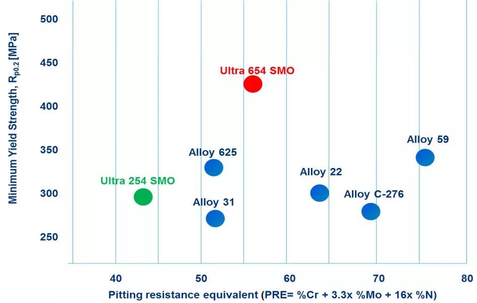 Ultra 654SMO的屈服強度Rp0.2≥430MPa,遠高于傳統的鎳基合金。