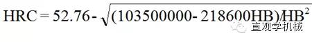 此公式換算結果與國家標準換算值對照,換算誤差為±2HV。