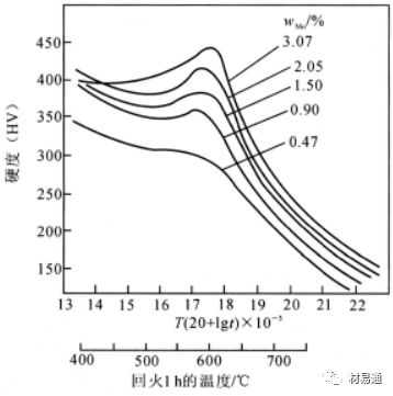 圖1 幾種常見合金元素對Wc = 0.2%鋼在不同溫度回火后引起的硬度增量(ΔHV)