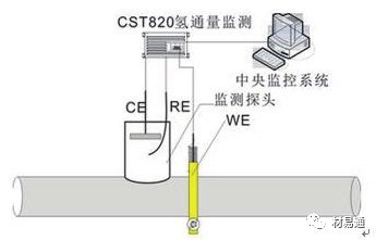 石油天然氣輸送管線、鍋爐酸洗過程由于腐蝕析氫使得原子氫在沒有形成氫分子之前就已經滲入鋼鐵的內部,使其內部原子氫的濃度不斷增加,原子氫在鋼的內部積累導致鋼制設備的韌性下降脆性增加,產生氫損傷并引發突發性惡性破壞事故。因此工業上需要有一種智能型原子氫探測技術來檢測或監檢測鋼鐵結構中氫腐蝕的速率,鋼鐵中原子氫的含量,并顯示設備內部由于氫的積集將要發生腐蝕破壞的危險性。