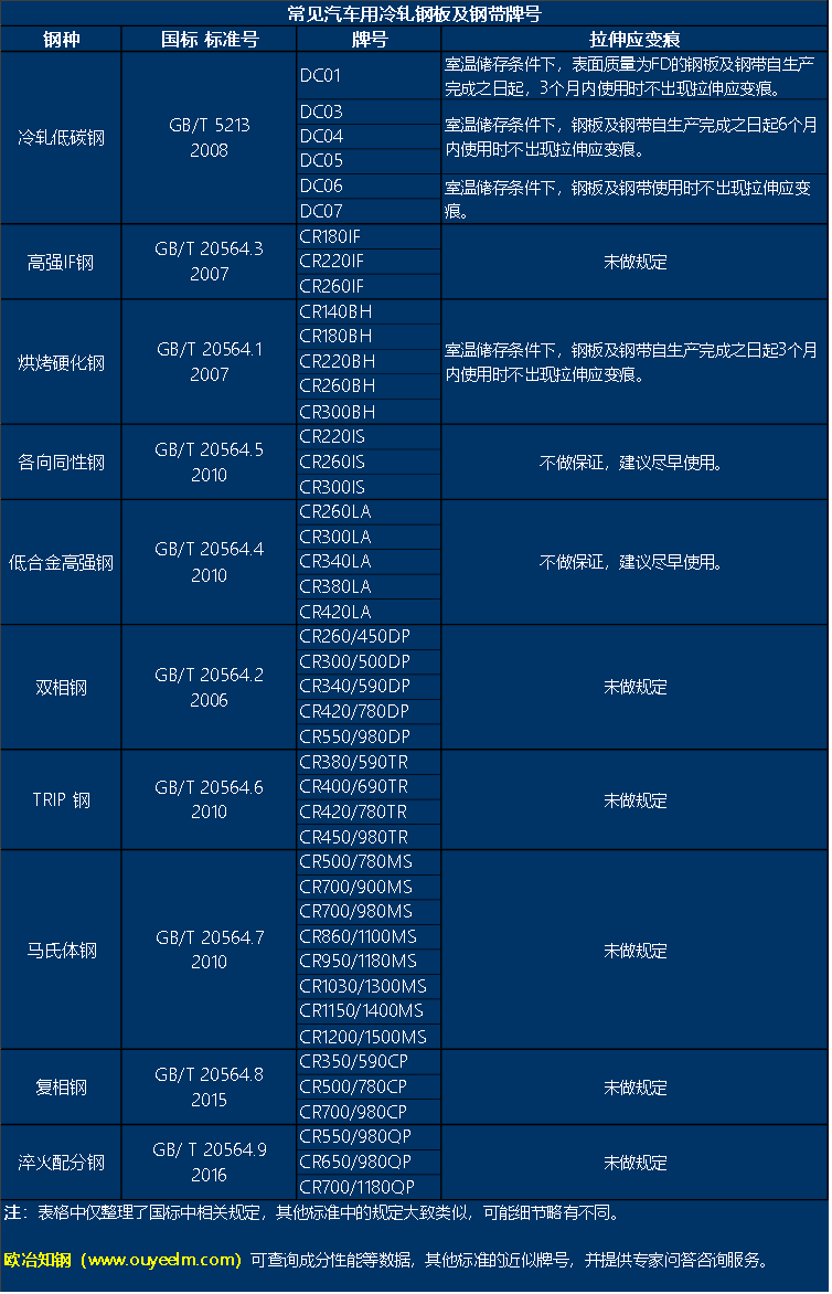 業內通常說的力學性能質保期,以類似SPCC、340LA等低碳鋼牌號為例,習慣上指的是兩個方面,一是部分冷熱軋低碳鋼的性能會隨著儲存時間的延長而出現劣化,影響成形性能的情況。二是因時效導致的拉伸應變痕情況。這些在標準中都會有相關的說明。