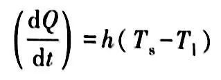 式中,Ts 是時間的變量,當表面被淬火冷卻介質瞬間冷卻時,淬冷烈度最大。如果淬火不劇烈,則溫度下降得慢。在鋼制零件中,熱流密度與溫度梯度相關,即: