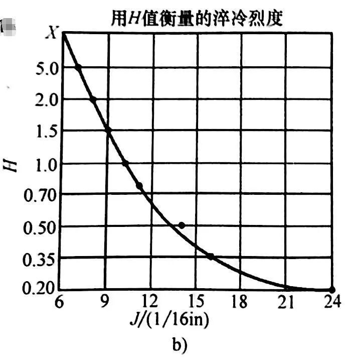 格羅斯曼及其同事研發的圖表和方法具有重要的實用價值,盡管他們假設 H 值在淬火期間是一個常數。雖然對于不同尺寸的不同鋼種來說這種計算方法是不嚴密的,然而,對于普遍現象,它清楚地闡明了當淬火棒的尺寸增加時,用中等淬冷烈度比用更劇烈的淬冷烈度淬火心部未淬透比例迅速增加。它也闡明了其他情況,諸如在非常大的圓柱體上維持一個淺層淬硬層,即便是淬透性適度降低,當淬火十分劇烈時,隨著直徑的變化,淬透厚度(D-Du) 幾乎沒有變化。同樣地,它闡明了在中等淬冷烈度的淬火冷卻介質中淬火時,對于相當小的鋼試樣,淬火圓環邊緣突然消失的原因。相應地,這些數據表明在某些條件下,軟點幾乎是不可避免的。H系數包括影響鋼的散熱的表面狀態(氧化皮厚度和結構), 以及熱擴散系數。此外,去除阻礙淬火的蒸汽膜中攪拌的影響,也體現在 H 值上。