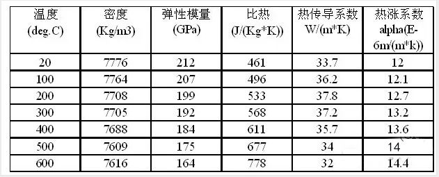 齒輪軸材料為18CrNiMo(材料參數見下表),其變形形式主要包括:軸向變形、徑向變形與翹曲變形。由于合金鋼熱處理變形主要表現為熱應力變形,因此采用有限元熱固耦合的方式加以仿真分析。