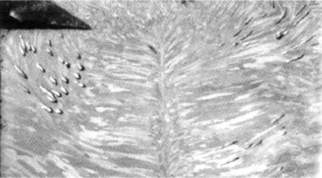 鼓泡多呈條狀,表面光滑,沿加工方向拉長,剖開后內壁呈光亮的金屬色澤,個別伴有氧化物或其他夾雜。鼓泡大多兩面對稱分布,在較薄的板帶材或薄壁管中比較明顯。