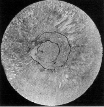 縮孔均出現在斷面的中心區。位于頭部的縮孔多呈錐形,內表面參差不齊或 有粗大的結晶組織。位于中部的斷續縮孔多為形狀不規則的大小孔洞,內部有時會充有金屬凝固時析出的氣體,表面較光滑,在以后的加工中往往難以焊合而形成分層和氣泡。縮孔的附近還易造成應力集中而在加工中產生裂紋。