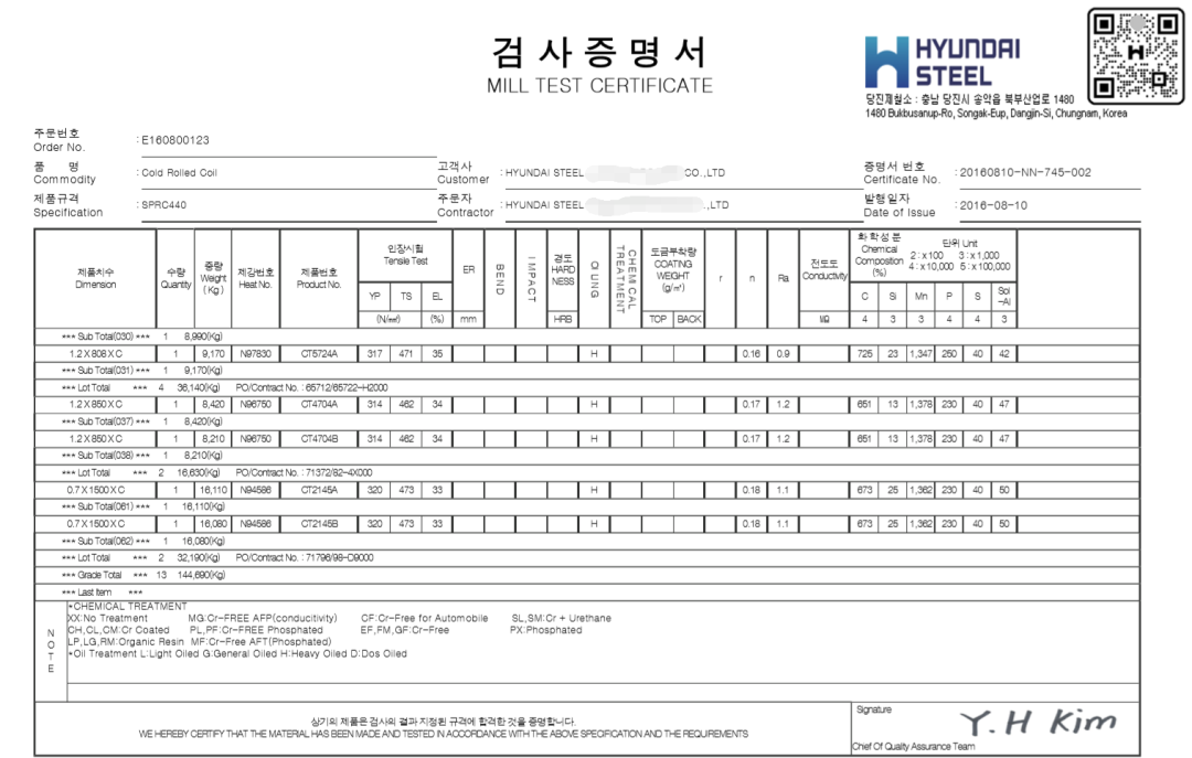 現(xiàn)代制鐵【韓國】質(zhì)保書