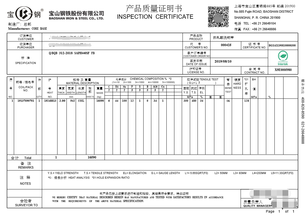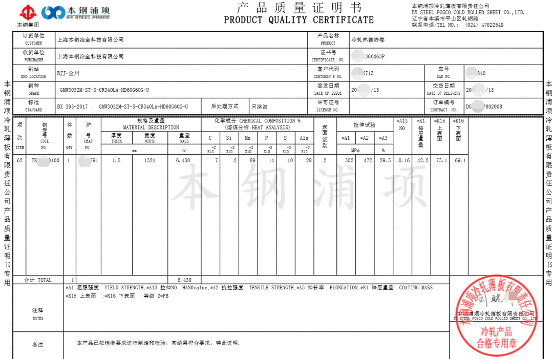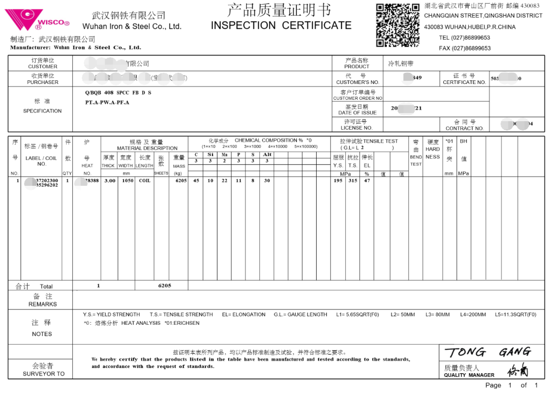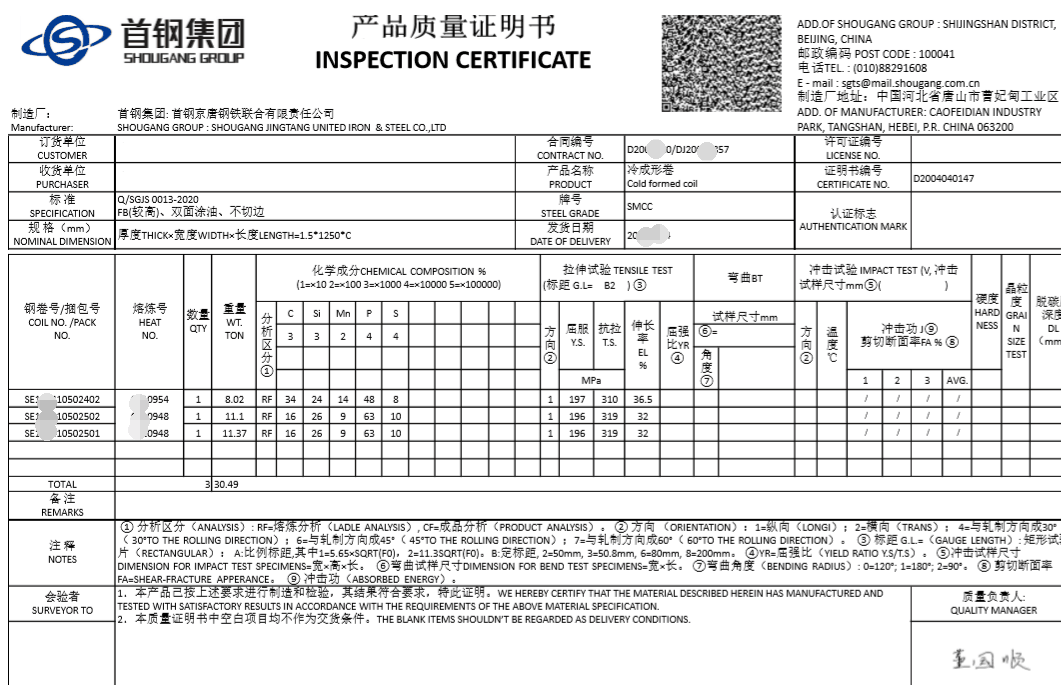 不同鋼廠不同品種可能會(huì)有不同的質(zhì)保書格式,老鋼貿(mào)也未必全部見過。