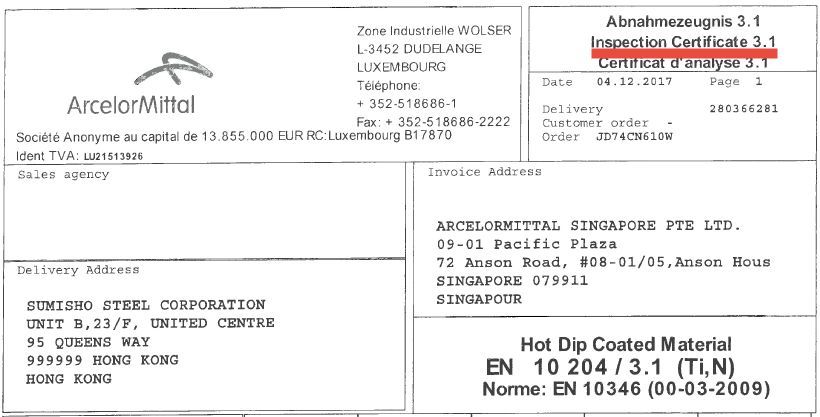 一文讀懂金屬材料的EN 10204 3.2/3.1證書
