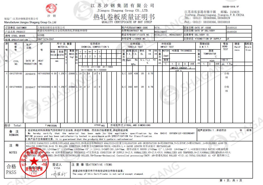 河北津西鋼鐵集團 (質保書-質量證明書-查詢驗證網站)