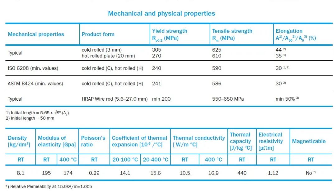 Ultra Alloy 825是鈦穩(wěn)定化的鎳基合金,并添加了銅。它包含約40%的鎳(見下表1),并具有奧氏體微觀結(jié)構(gòu)。當(dāng)在不銹鋼可能對(duì)此現(xiàn)象敏感的溫度下使用時(shí),鈦穩(wěn)定化及其低碳含量可降低形成碳化鉻析出的風(fēng)險(xiǎn)。因此,這使得Ultra Alloy 825對(duì)晶間腐蝕較不敏感。
