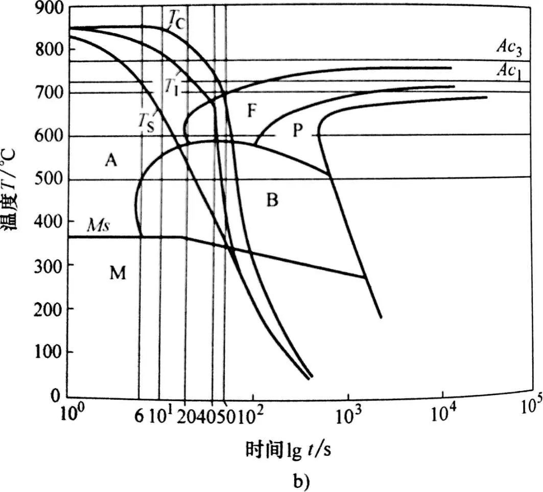 參見預冷淬火原理圖如圖4 a)。z 是在任意一條等溫線上給定的總孕育時間,是直至轉變開始的時間,而 x 是冷卻速度不連續變化前的孕育時間。