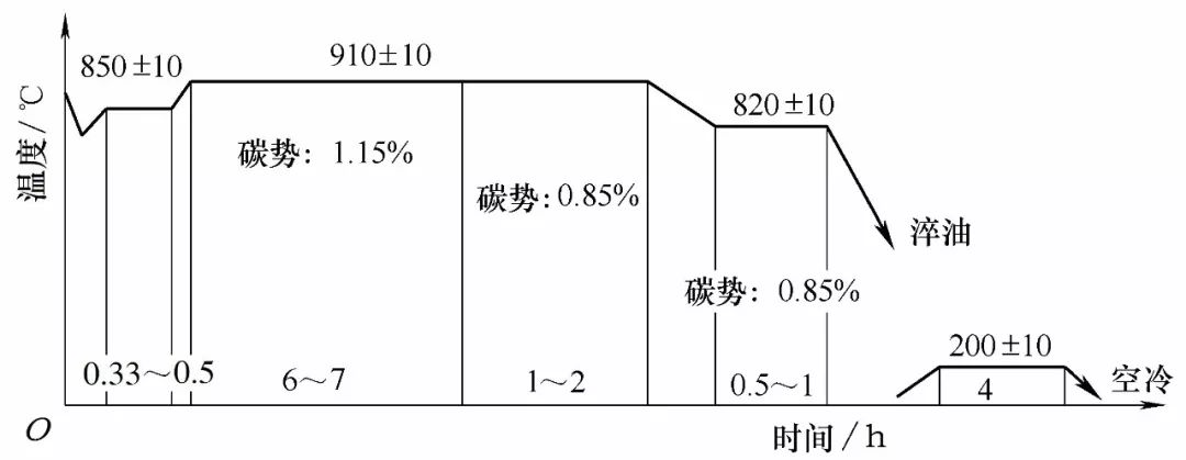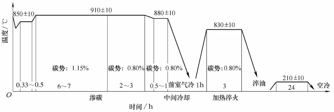 圖6 “滲碳緩冷、一次淬火”工藝曲線