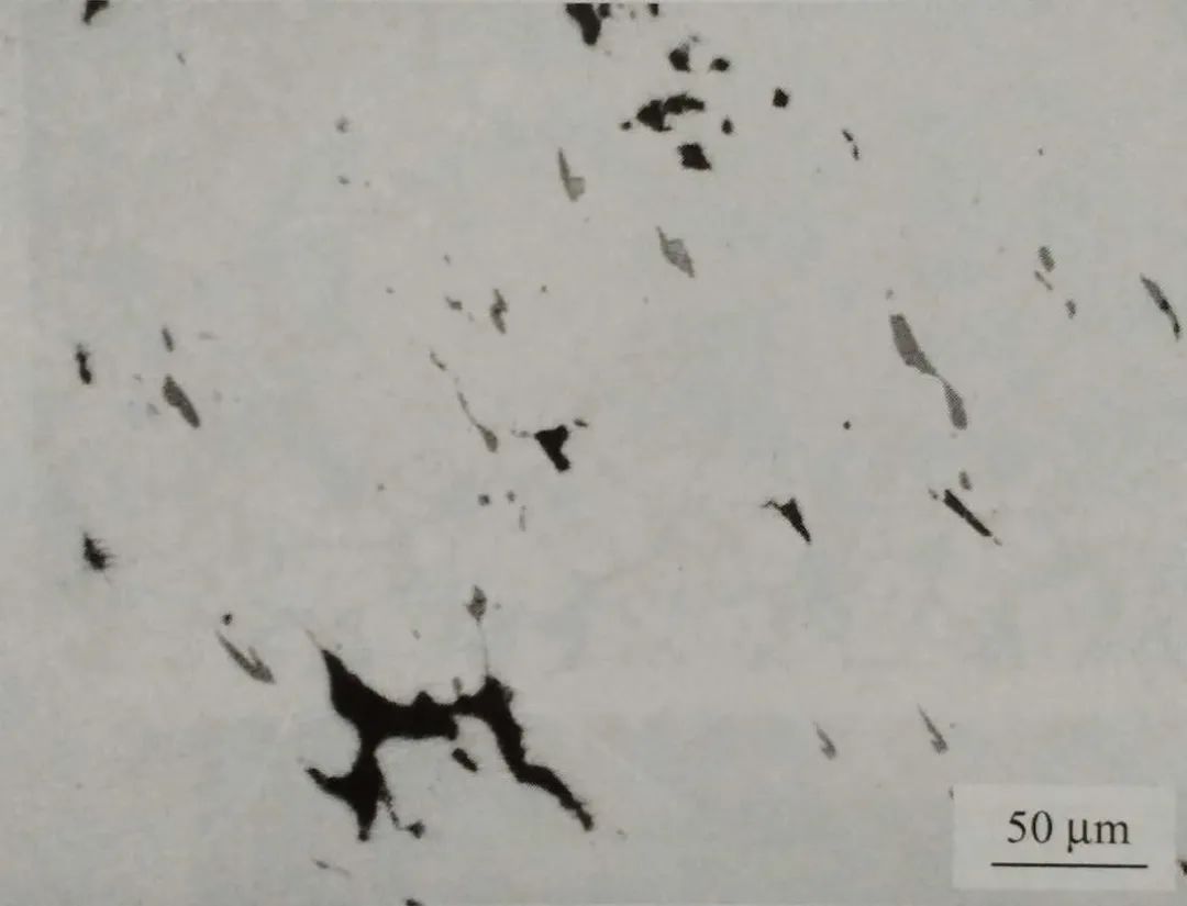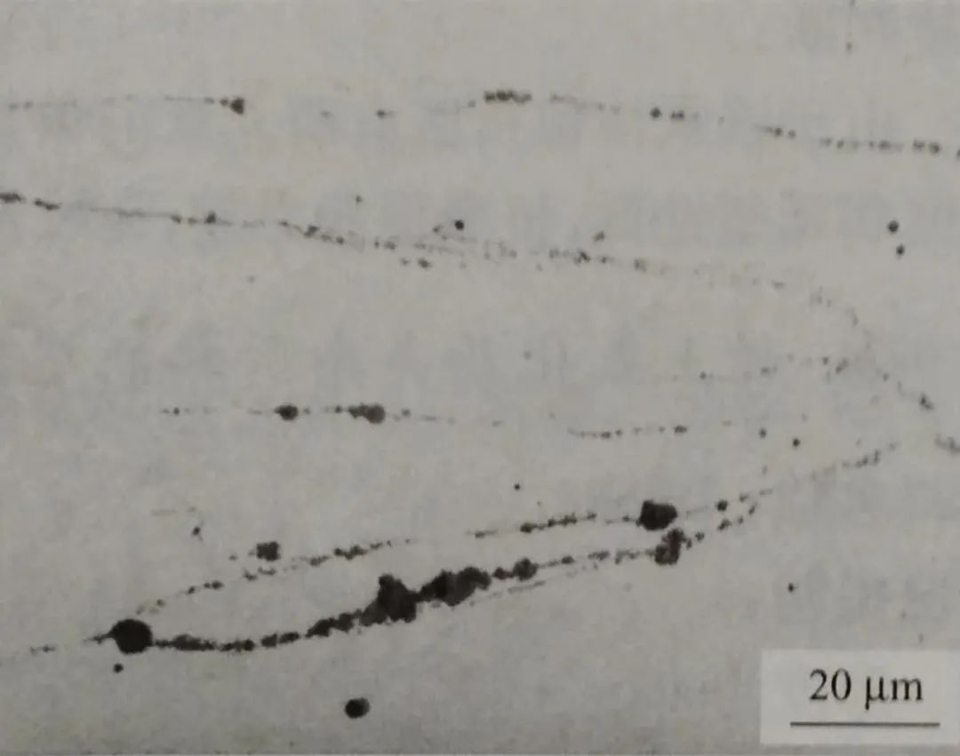取金相試樣觀察,裂紋出現在鐵素體偏析區,該區域存在大量聚集分布的夾雜物,見圖1-14和圖1-15。