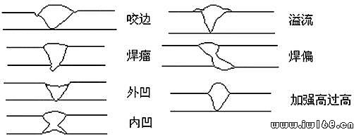 焊縫波紋粗劣,焊縫不均勻、不整齊,焊縫與母材不圓滑過渡,焊接接頭差,焊縫高低不平。