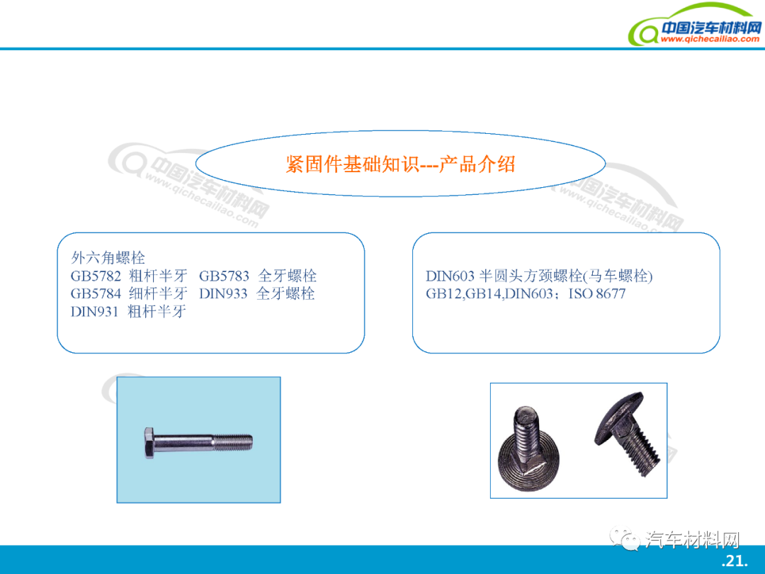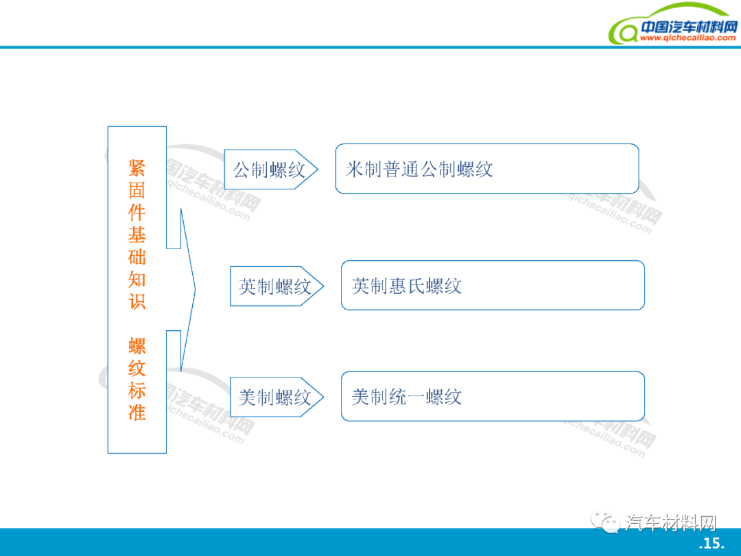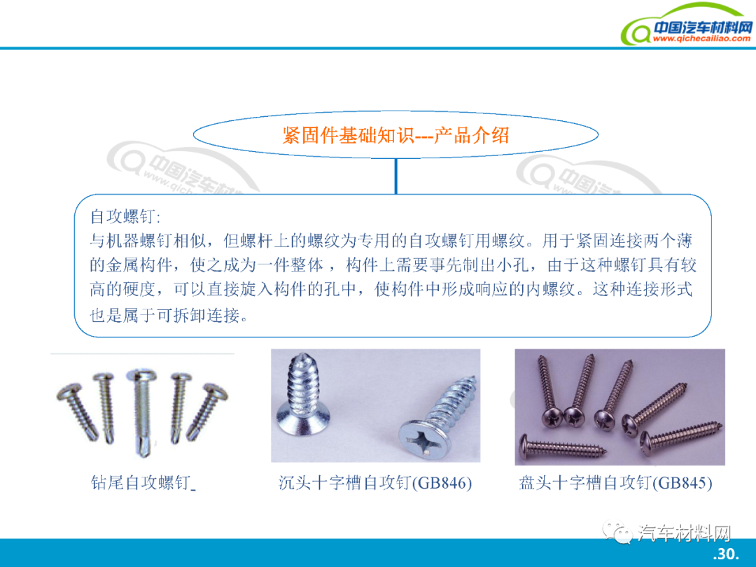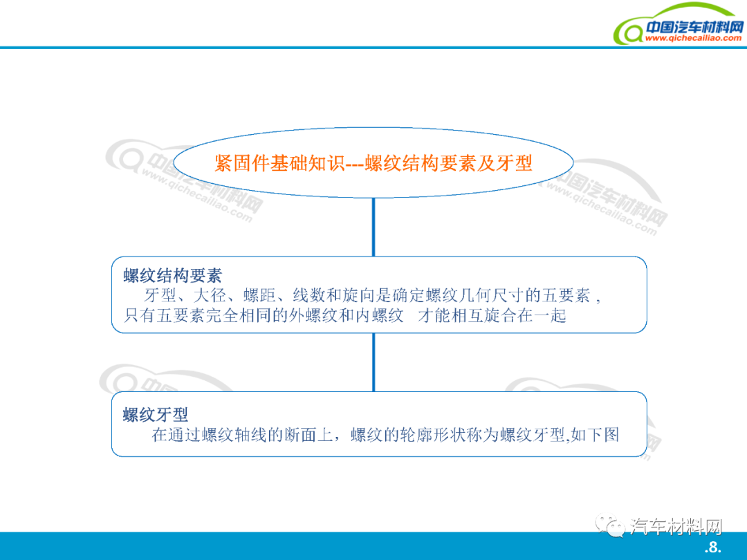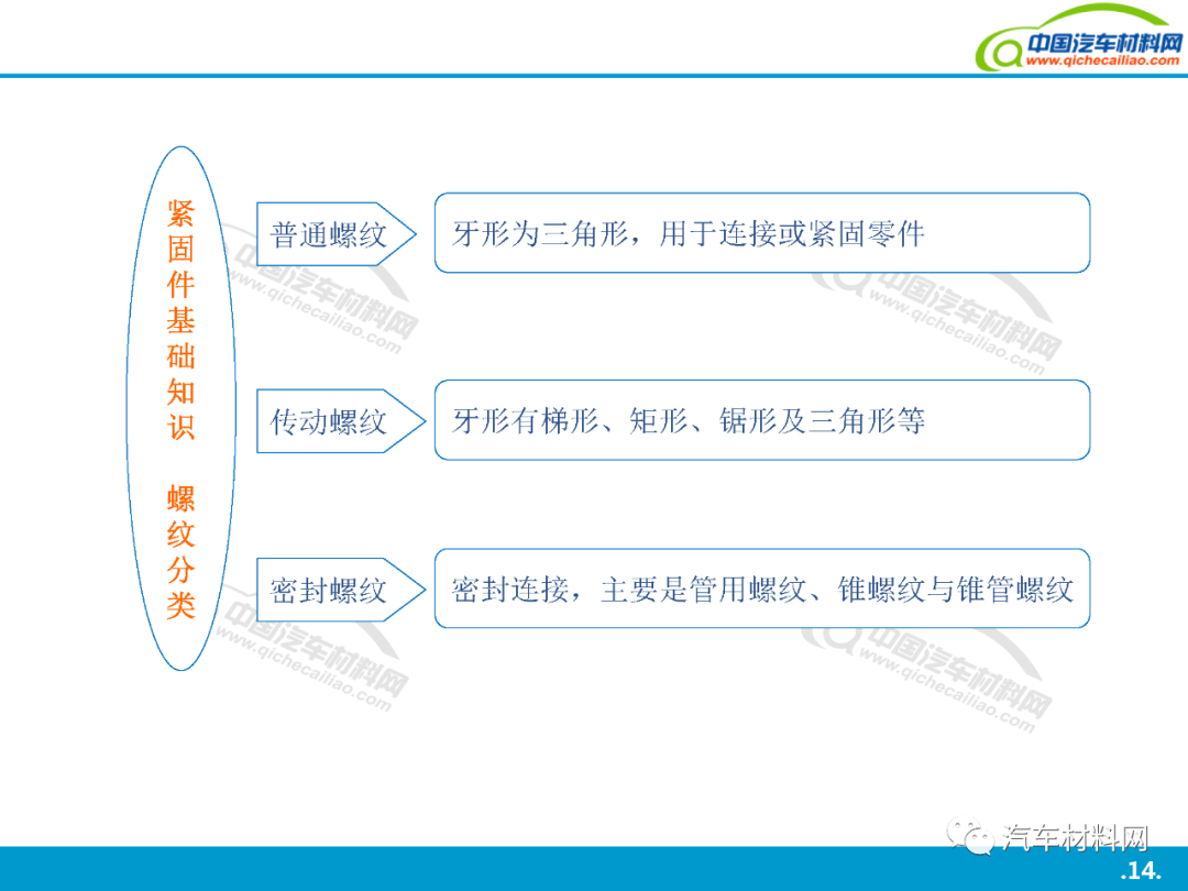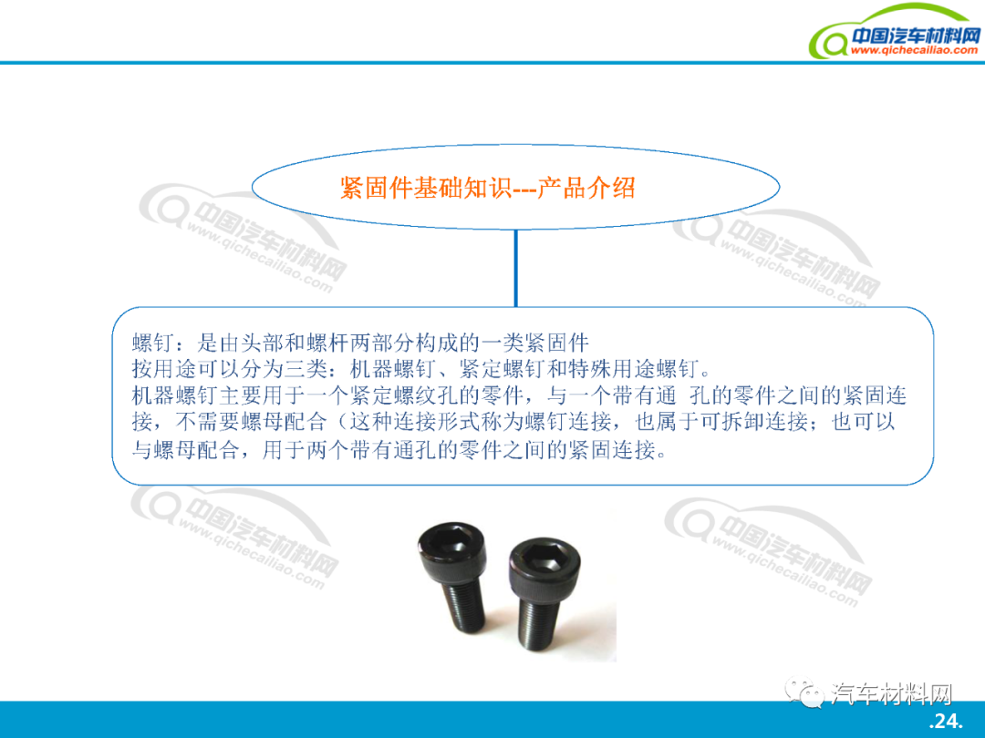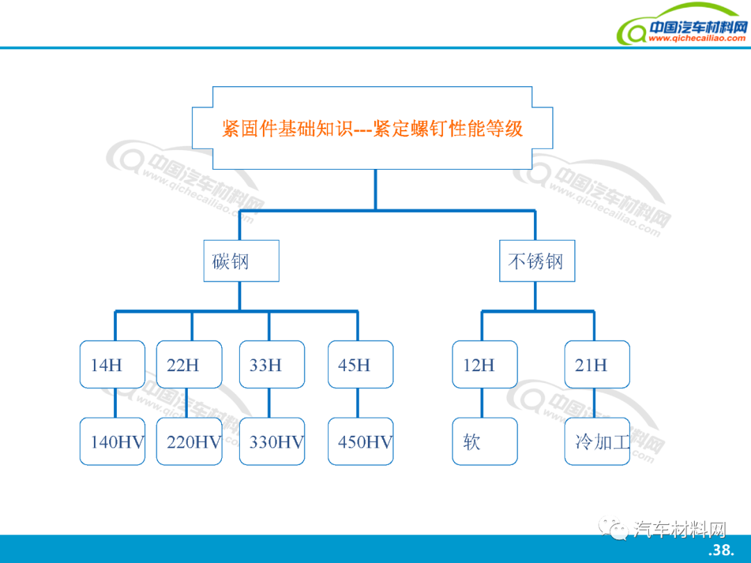 本站之有發(fā)表過(guò): 汽車上每個(gè)零件圖普 珩磨管工藝及其在汽車零部件制造中的應(yīng)用工藝介紹 中國(guó)到底有多少汽車工廠? 汽車金屬的腐蝕及防腐方法 汽車用金屬材料(碳鋼、合金鋼、鑄鐵)知識(shí)點(diǎn)全解析 全球最牛的十大汽車零部件供應(yīng)商簡(jiǎn)介 汽車零部件熱處理車間的管控技術(shù) 上海汽車產(chǎn)業(yè)鏈全景圖(含300家汽車零部件企業(yè)介紹) 等文章, 大家都說(shuō)好. 今天我們?cè)賮?lái)一起學(xué)習(xí)一下: 汽車緊固件詳解, 希望對(duì)大家有用. 共44頁(yè)P(yáng)PT