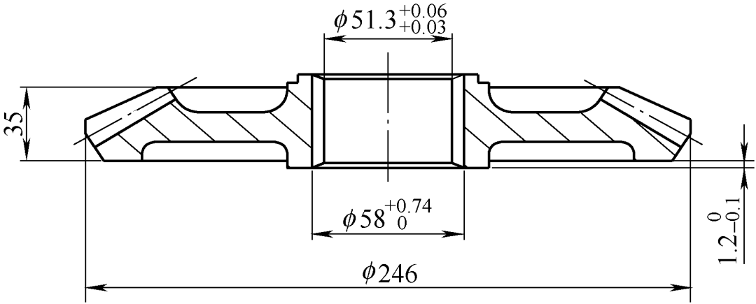 從動(dòng)錐齒輪屬于薄壁盤(pán)形零件,其截面差較大。它的變形規(guī)律是內(nèi)孔縮小和端面翹曲變形,是在各種復(fù)雜應(yīng)力綜合作用下產(chǎn)生的結(jié)果。引起翹曲變形的主要原因是: