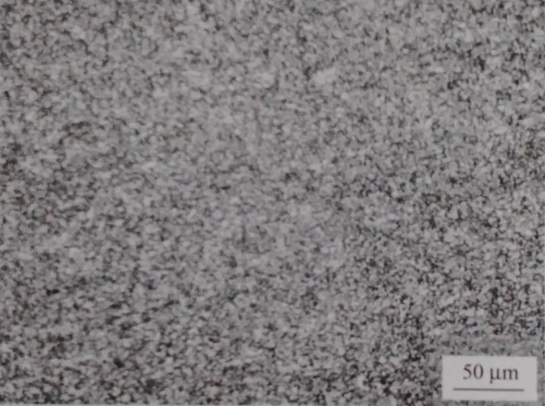 距裂紋稍遠處的上表層組織為細小針狀鐵素體和已經變了形的鐵素體粗條帶(圖1-67) 。而下表層組織與中部相同,沒有形變組織,為細小針狀鐵素體(圖1-68) 。