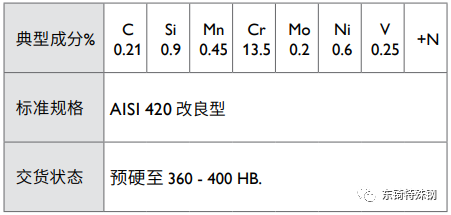 Mirrax 40 是一種經(jīng)過重熔冶煉的不銹鋼,預(yù)硬處理至40 HRC。