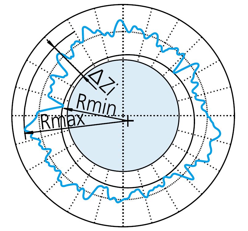 半徑法利用了工件旋轉(zhuǎn)一周所獲取的最大半徑值和最小半徑值之差來(lái)評(píng)價(jià)圓度。