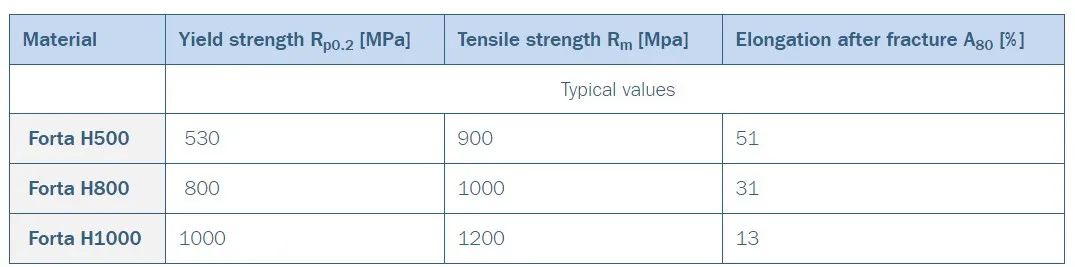 圖5. Forta H系列的機械性能