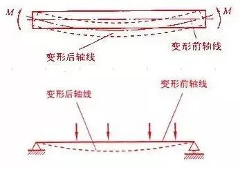 平面彎曲:當外加力偶M 或外力F 作用于桿件的縱向平面內時,桿件將發生彎曲變形,其軸線將變成曲線。