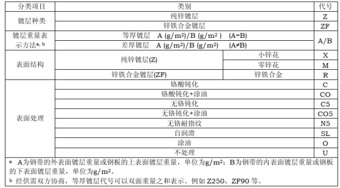 不處理(U)該表面處理僅適用于需方在訂貨期間明確提出不進(jìn)行表面處理的情況,并需在合同中注明。這種情況下,鋼板及鋼帶在運(yùn)輸和儲(chǔ)存期間表面較易產(chǎn)生白銹,用戶在選用時(shí)應(yīng)慎重考慮。