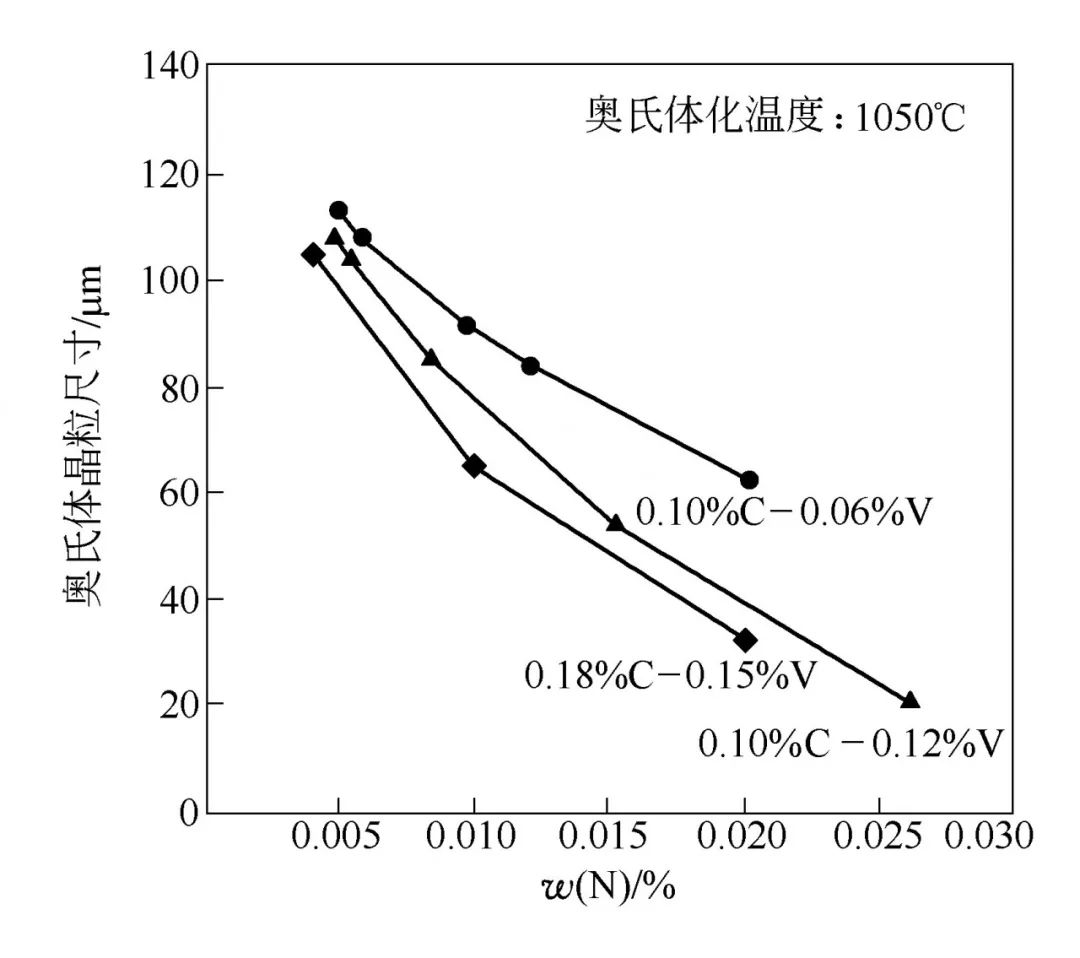 圖2 氮對釩鋼細化奧氏體晶粒尺寸的影響