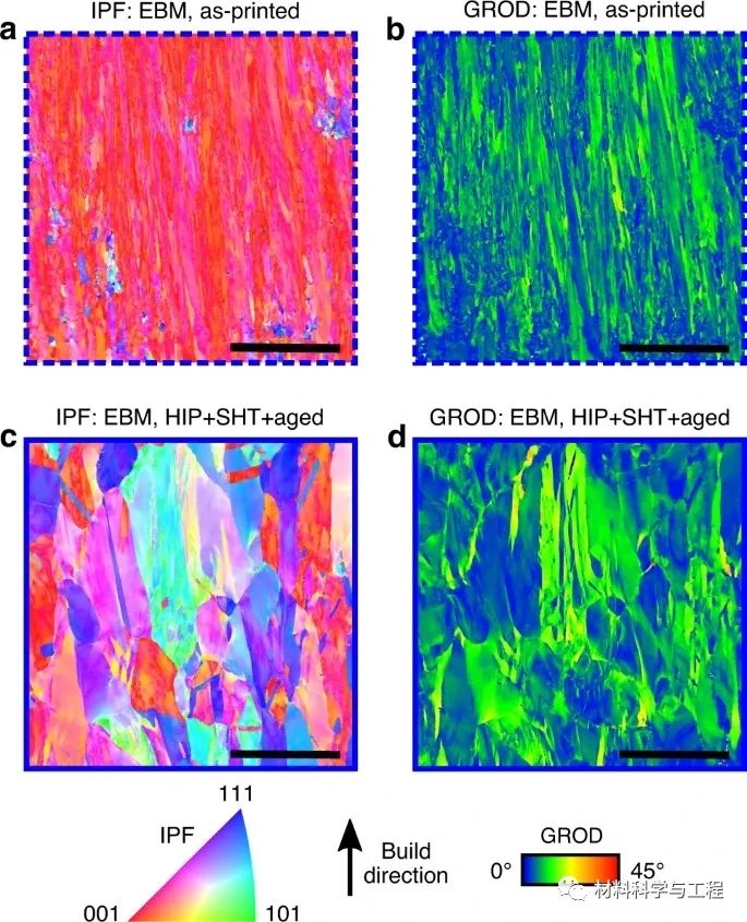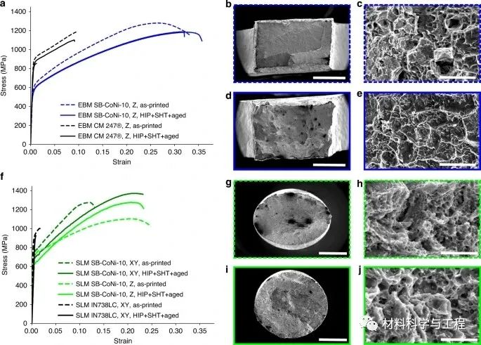 綜上所述,研究者最近開發的CoNi-基高溫合金SB-CoNi-10,已經成功地使用EBM和SLM進行了打印。打印的微觀結構顯示,在EBM和SLM凝固過程中,良好的溶質分配與良好的γ′-“溶解”溫度相結合,可以抑制開裂。對CoNi-基高溫合金成分進一步研究,對今后的AM應用具有廣闊的前景。新興的高通量實驗和計算工具現在能夠快速探索多維成分空間,以發現AM所需的合金。