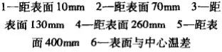 油冷時鍛件中最大溫差比水冷小,一般不超過500℃。圖7~圖10 是不同截面鍛件的油冷冷卻曲線。采用空-油冷卻(延遲淬冷)可顯著降低工件內外溫差(見圖11 ) 。