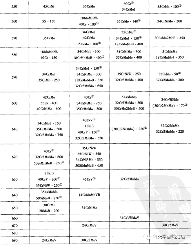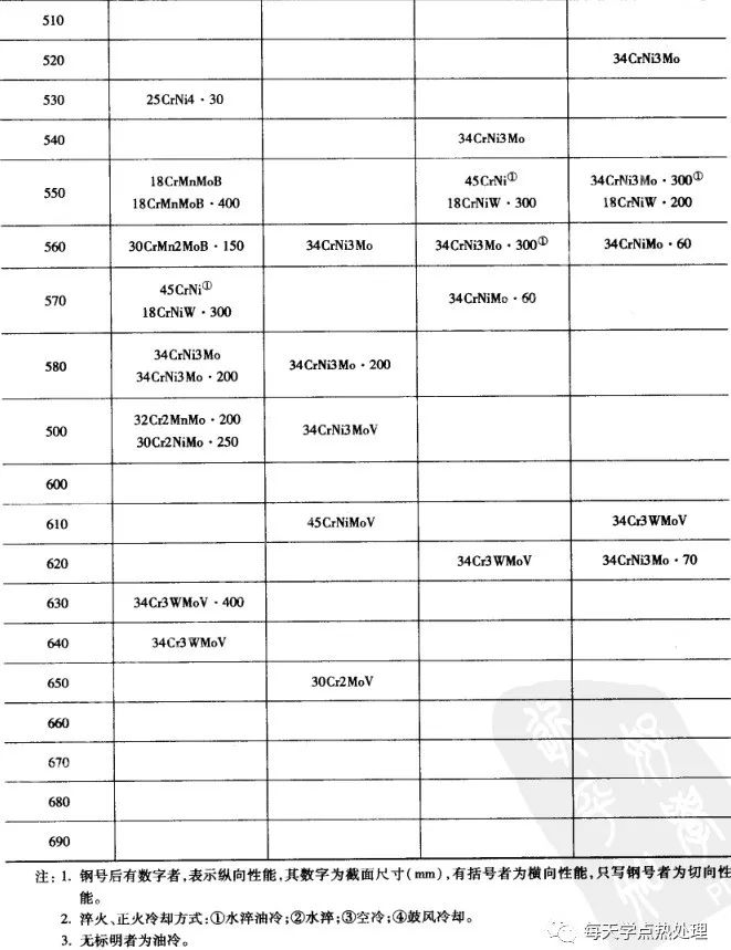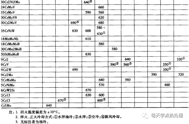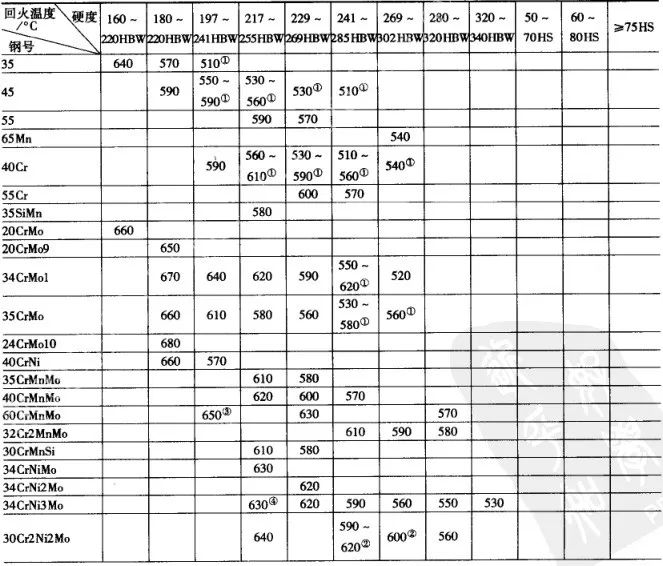 ▼表4 各種大鍛件用鋼的硬度與回火溫度的關系