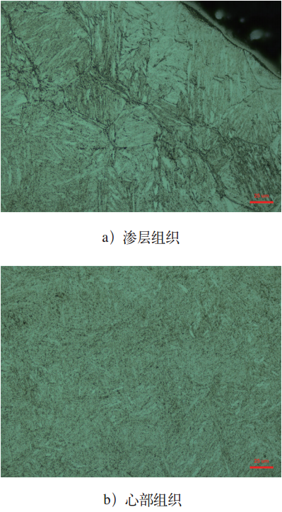 圖5 氣體滲氮后滲層組織及心部組織(普氮)