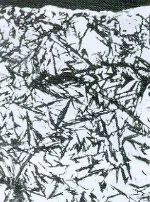 將碳氮共滲中工件的橫截面拋光后,在未腐蝕或輕微腐蝕的狀態下,使用光學顯微鏡在表面滲層中有時可觀察到一些分散的大小不一的黑色或暗灰色的斑點、黑帶和黑網,這些深色的斑點、黑帶和黑網,統稱為黑色組織。黑色組織的深度一般不超過0.05mm。深色的斑點是一些主要沿奧氏體晶界分布的大小不一的孔洞。黑色帶通常出現在距表面0.03mm深度內,黑帶的內測往往可觀察到黑色網,主要由于表層形成了某些合金元素的碳氧化物、氮氧化物和碳化物等小顆粒,使奧氏體中合金元素貧化,導致淬透性降低而形成了托氏體的結果。碳氮共滲的黑色組織類似于氣體滲碳的內氧化,使表面硬度下降,有益的殘余壓應力減小,或表面形成殘余拉應力,導致疲勞強度的降低。20Cr2Ni4A鋼碳氮共滲試樣表面黑色組織可使彎曲疲勞強度降低約6%。