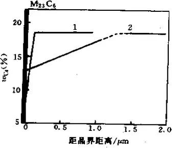晶間腐蝕是沿晶界發生的選擇性腐蝕,也是一種最易受熱處理影響的腐蝕類型。發生晶間腐蝕的主要原因是由于晶界貧鉻。例如,奧氏體不銹鋼在焊接或受到其它熱影響而被加熱到400℃~850℃時,鉻的碳化物易沿晶界析出。結果造成晶界貧鉻,導致基體中的鉻向晶界擴散。含鉻碳氮化物的析出和品格區的恢復取決于溫度和時間。溫度高時,由于鉻的擴散能力大,一方面含鉻碳化物容易析出,另一方面鉻向貧鉻區擴散的恢復過程進行得也較快;溫度低時,雖然鉻難于在鋼中擴散,但鉻碳化物也不會在晶界析出,因而也不會發生晶界貧鉻問題。