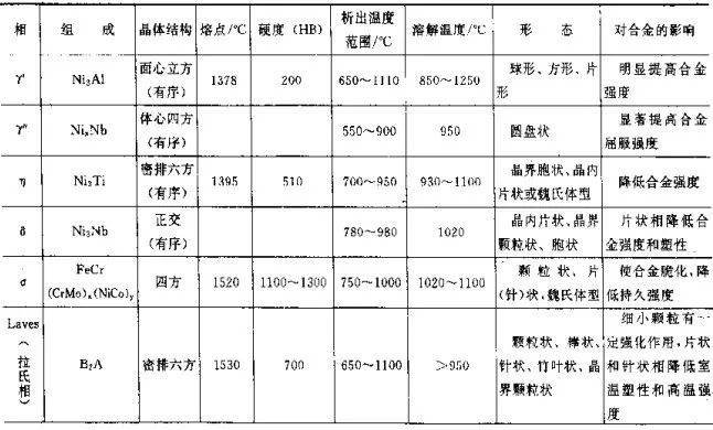 高溫合金的基體是Ni-Cr、Fe-Ni-Cr和Co-Cr-Ni奧氏體。高溫合金中的第二相有各種碳化物、氮化物、硼化物和各種合金間化合物。γ′[Ni3(AlxTi)]和