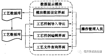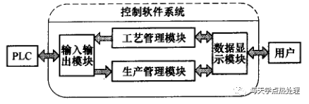 件回路端的可編程序控制器(PLC) 和生產(chǎn)管理人員。輸人輸出模塊的作用是接受工藝管理模塊規(guī)劃的淬火加工工藝,并將這些工藝信息轉(zhuǎn)化為數(shù)據(jù)源形式發(fā)送給可編程序控制器(PLC) , 同時(shí)接收可編程序控制器(PLC) 端的控制狀態(tài)信息,集中發(fā)送給生產(chǎn)管理模塊使用。數(shù)據(jù)顯示模塊的任務(wù)是把各種控制狀態(tài)信息顯現(xiàn)給生產(chǎn)管理人員,同時(shí)接收管理人員的控制指令,對(duì)工藝管理模塊和生產(chǎn)管理模塊進(jìn)行調(diào)控。