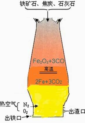 在高爐中,鐵并不是直接從高價氧化物中還原出來的,而是要經(jīng)過一個由高價氧化物還原成低價氧化物,再由低價氧化物還原出鐵的過程: