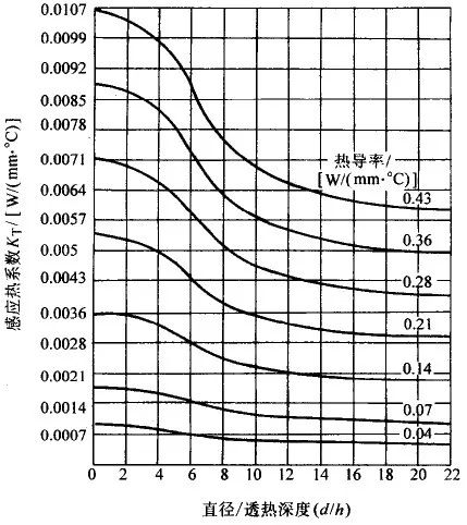(2)用金屬加熱時(shí)的熱導(dǎo)率及 d/h 值,在圖3 中查出對(duì)應(yīng)的感應(yīng)熱系數(shù)Kτ。