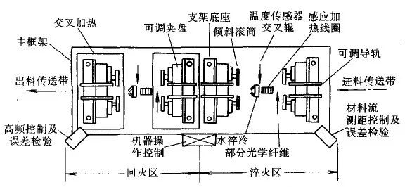 注:管材從右側(cè)進(jìn)入,加熱奧氏體化后經(jīng)過(guò)淬冷、輸出、回火。隨后被送到加工機(jī)床冷卻。