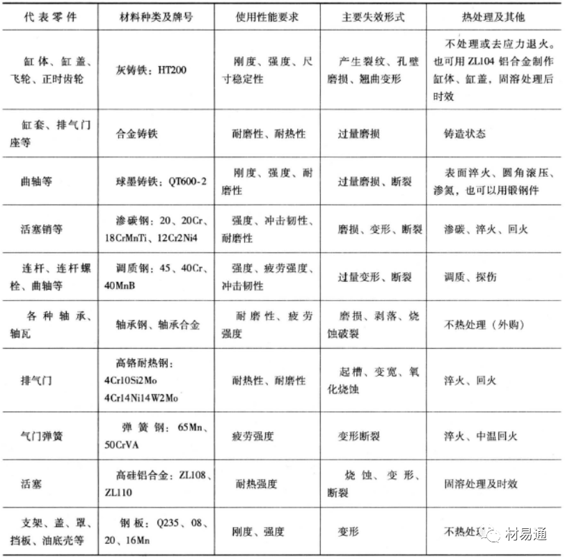 根據工作條件及失效形式的分析,可以對齒輪材料提出如下性能要求。 ① 較高的彎曲疲勞強度,特別是齒根處要有足夠的強度。 ② 較高的齒面硬度和耐磨性。 ③ 較高的心部強度和足夠的沖擊韌性。 ④ 熱處理變形小。 在我國應用最多的汽車齒輪用材是合金滲碳鋼20Cr和20CrMnTi,經滲碳、淬火和低溫回火等熱處理強化后使用。滲碳后表面碳含量大大提高,以保證淬火后得到高硬度、高耐磨性和高接觸疲勞強度。由于合金元素提高了淬透性,淬火、低溫回火后可使心部獲得較高的強度和足夠的沖擊韌性。為了進一步提高齒輪的使用壽命,滲碳、淬火、低溫回火后,還可以采用噴丸處理,增大表面壓應力,有利于提高齒面和齒根的疲勞強度,并清除氧化皮。 合金滲碳鋼齒輪的生產工藝路線一般為:下料→鍛造→正火→切削加工→滲碳、淬火及低溫回火→噴丸→磨削加工。 軸是汽車上的最重要零件之一,主要用于支撐傳動零件(如齒輪、凸輪等)傳遞運動和動力。根據軸類零件的工作條件和失效形式,對其材料有以下性能要求。 ①良好的綜合力學性能,足夠的強度、硬度、塑性和一定的韌性,以防止過載斷裂和沖擊斷裂。 ②足夠的淬透性,熱處理后表面要有高硬度、高耐磨性,以防磨損失效。 ③較高的疲勞強度,對應力集中敏感性低,以防疲勞斷裂。 ④良好的可加工性,價格便宜。 軸類零件的選材既要考慮材料的強度,也要考慮沖擊韌性和表面耐磨性。因此軸一般用鍛造或軋制的低、中碳鋼或合金鋼制造。 由于碳鋼比合金鋼便宜,并且有一定的綜合力學性能,對應力集中敏感'性小,所以一般軸類零件使用碳鋼較多。常用的優質碳素結構鋼有35鋼、40鋼、45鋼、50鋼等,其中45鋼最常用。為改善其性能,這類鋼一般要經過正火、調質或表面淬火熱處理。 合金鋼比碳鋼具有更好的力學性能和熱處理工藝性,但對應力集中敏感性較高,價格也較高,所以,當載荷較大并要求限制軸的外形、尺寸和重量,或軸頸的耐磨性要求高時,可采用合金鋼。常用的合金鋼有20Cr、40Cr、40CrNi、2OCrMnTi、40MnB須采用相應的熱處理才能充分發揮其作用。 除了上述碳鋼和合金鋼外,還可以采用球墨鑄鐵和高強度灰鑄鐵作為軸的材料,特別是曲軸的材料。 曲軸是汽車發動機中形狀復雜的重要零件之一,如下圖所示。汽車發動機曲軸的作用是輸出動力,并帶動其他部件運動。曲軸在工作中受到彎曲、扭轉、剪切、拉壓、沖擊及交變應力的作用。曲軸的形狀極不規則,其上的應力分布極不均勻,曲軸頸與軸承還發生滑動摩擦。曲軸的主要失效形式是疲勞斷裂和軸頸嚴重磨損兩種。根據曲軸的工作條件和失效形式,要求曲軸應其備以下性能。 ① 較高的強度和一定的沖擊韌性 ② 足夠的抗彎、抗扭轉和疲勞強度 ③ 足夠的剛度 ④ 軸頸表面有較高的硬度和耐磨性 實際生產中,按照制造工藝,將汽車發動機曲軸分為鍛造曲軸和鑄造曲軸。鍛造曲軸一般采用優質中碳鋼和中碳合金鋼制造,如30、35、35Mn2、40Cr、35CrMo等,經模鍛、調質、切削加工后對軸頸部進行表面津火。鑄造曲軸主要由鑄鋼、球墨鑄鐵、珠光體可鍛鑄鐵及合金鑄鐵等制造,如ZG230-450、QT600-3、KTZ450-5,KTZ500-4等。鑄造曲軸經鑄造、高溫正火、高溫回火、切削加工后,對軸頸部要進行氣體滲碳、淬火、回火處理。 不同的彈簧用途不同:如汽車、拖拉機、火車中使用的懸掛彈簧,主要起緩沖或減振作用;汽車發動機中的氣門彈簧,在外力去除后能自動恢復到原來位置,起到復位作用;鐘表、玩具中的發條起儲存和釋放能量的作用。 對彈簧材料的主要性能要求是:高的彈性極限和高的屈強比,高的疲勞強度以及一定的塑性和韌性。一些特殊彈簧還要求有良好的耐熱性和耐蝕性。 中碳鋼和高碳鋼都可制作彈簧,但因其淬透性和強度較低,只能用來制造截面較小、受力較小的彈簧。合金彈簧鋼則可制造截面較大、屈服極限較高的重要彈簧。 汽車板簧用于緩沖和吸振,承受很大的交變應力和沖擊載荷。其主要失效形式為剛度不足引起的過度變形或疲勞斷裂。因此對汽車板簧材料的要求是要有較高的屈服強度和疲勞強度。 汽車板簧一般選用彈性高的合金彈簧鋼制造,如65Mn、60Si2Mn鋼等。對于中型或重型汽車,板簧還采用50CrMn,55SiMnVB鋼;對于中型載貨汽車用的大截面積板簧,則采用55SiMnV、55SiMnVNb鋼制造。 板簧一般采用的加工工藝路線為:熱軋鋼板沖裁下料→壓力成形→淬火、中溫回火→噴丸處理。噴丸強化處理也是對板簧進行表面強化的重要手段,目的是為了提高板簧的疲勞強度。 氣門彈簧是一種壓縮螺旋彈簧,其用途是在凸輪、搖臂或挺桿的聯合作用下,使氣門打開和關閉。氣門彈簧受力不是很大,可采用悴透性比較好、晶粒細小、有一定耐熱性的50CrVA鋼制造。其加工工藝路線為:冷卷成形→淬火、中溫回火→噴丸處理→兩端磨平。 一般箱體類零件結構復雜,具有不規則的外形和內腔,且壁厚不均勻。這類零件包括各種機械設備的橫梁、支架、底座、齒輪箱、軸承座、閥體、泵體等,在汽車上的應用主要有氣缸體、氣缸蓋、變速器殼體、驅動橋殼等,質量相差很大,從幾千克到數十噸。工作條件相差也很大,其中有的基礎件以承受壓力為主,如內燃機氣缸體、氣缸蓋,并要求有較好的剛度和減摩性;有的要承受彎曲、扭轉、拉壓和沖擊載荷,如汽車的驅動橋。總