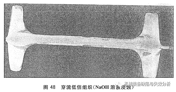 焊合不良是采用舌形模或分流組合擠壓的制品,在低倍試片的焊合區出現連續或斷續的黑色縫隙。如果出現白色或暗色的細道,未破壞內部組織的連續性,則屬于正常組織。
