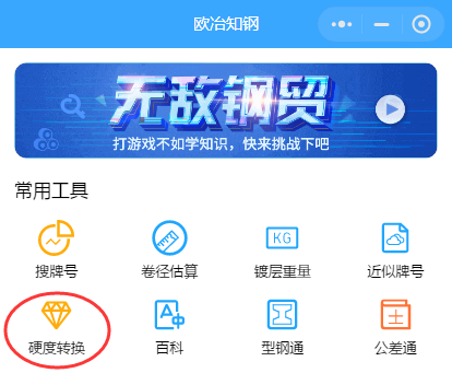 但是硬度和另一個(gè)指標(biāo):“抗拉強(qiáng)度”有統(tǒng)計(jì)學(xué)上的正比關(guān)系,在某些條件下可以轉(zhuǎn)換做參考。知鋼小程序中的硬度轉(zhuǎn)換工具就是基于這個(gè)原理的(點(diǎn)擊圖片進(jìn)入小程序)。