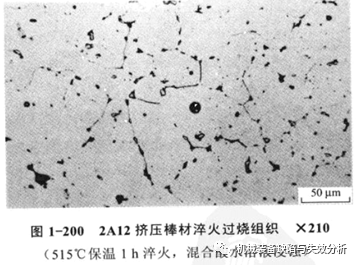 (2)制品在淬火時,如淬火介質溫度過高或在空氣中停留時間過長,冷卻速度更,慢時,都會引起叫α(Al)固溶體分解,析出物首先沿晶界析出,使晶界粗化,如下圖,往往造成“過燒”的錯覺。遇此問題,可將試樣在稍低于淬火溫度進行二次重溶后迅速冷卻再檢驗。