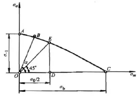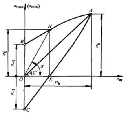 在不同應力比r 條件下將σmax表示的疲勞極限σ分解為σa σm,并在該坐標系中作ABC曲線,則得到σa -σm 疲勞圖。