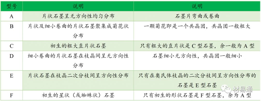灰鑄鐵石墨類型及說明